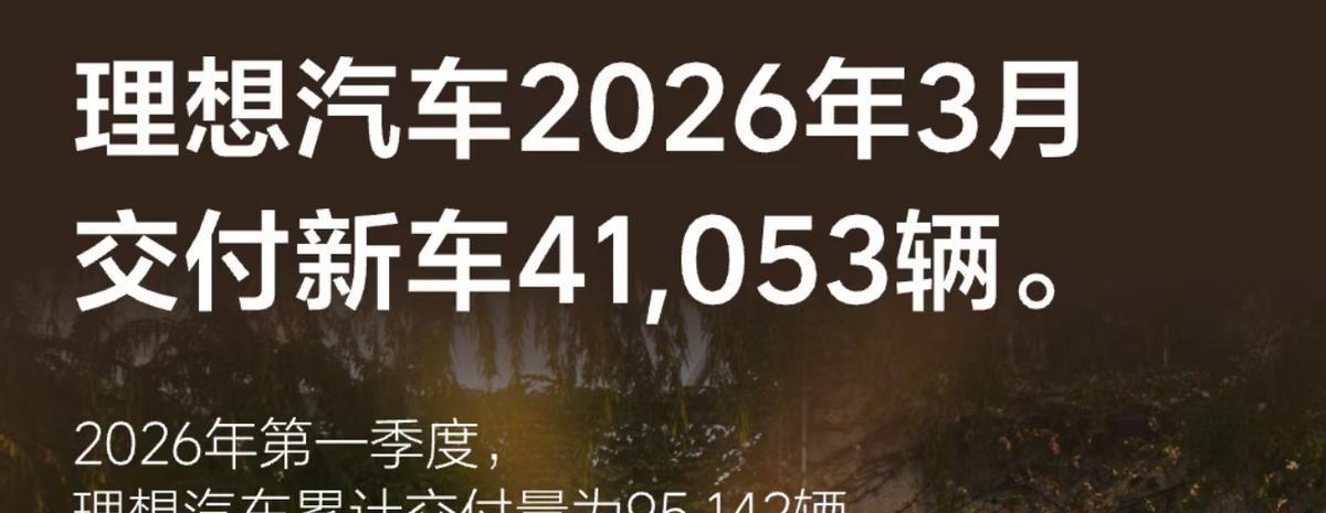 3 月理想彻底迎来强势反弹,当月交付 41053 辆,同比增长 11.94%,环比增长 55.38%,一季度累计交付 95142 辆,彻底扭转开年同比下滑颓势。此次回暖核心来自纯电产品全面突破,理想 i6 单月交付突破 24000 辆,占品牌总交付量 58.5%,成为全新销量支柱;i8 产能爬坡稳步推进,标志着理想纯电布局正式进入收获期。此前电池供应问题已全面解决,全新 L9 改款将于二季度上市,在销量走高的同时保持稳定单车毛利,为全年盈利目标提供支撑。