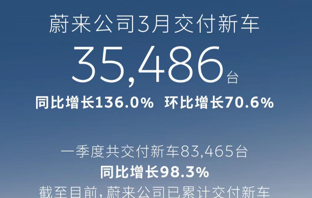 蔚来 3 月交付 35486 台,同比暴涨 136%,环比增长 70.6%,创品牌单月交付历史新高,一季度累计交付 83465 辆,同比增长 98.3%。主品牌全新 ES8、ES6 持续热销,牢牢守住 30 万以上豪华市场基本盘;此前表现黯淡的乐道、萤火虫品牌迎来全面反弹,3 月分别交付 6877 台、6119 台,环比均实现翻倍增长,多品牌战略终见成效。4 月蔚来将迎来新品密集投放期,旗舰 SUV ES9、2026 款乐道 L90 将陆续发布,持续完善产品矩阵。