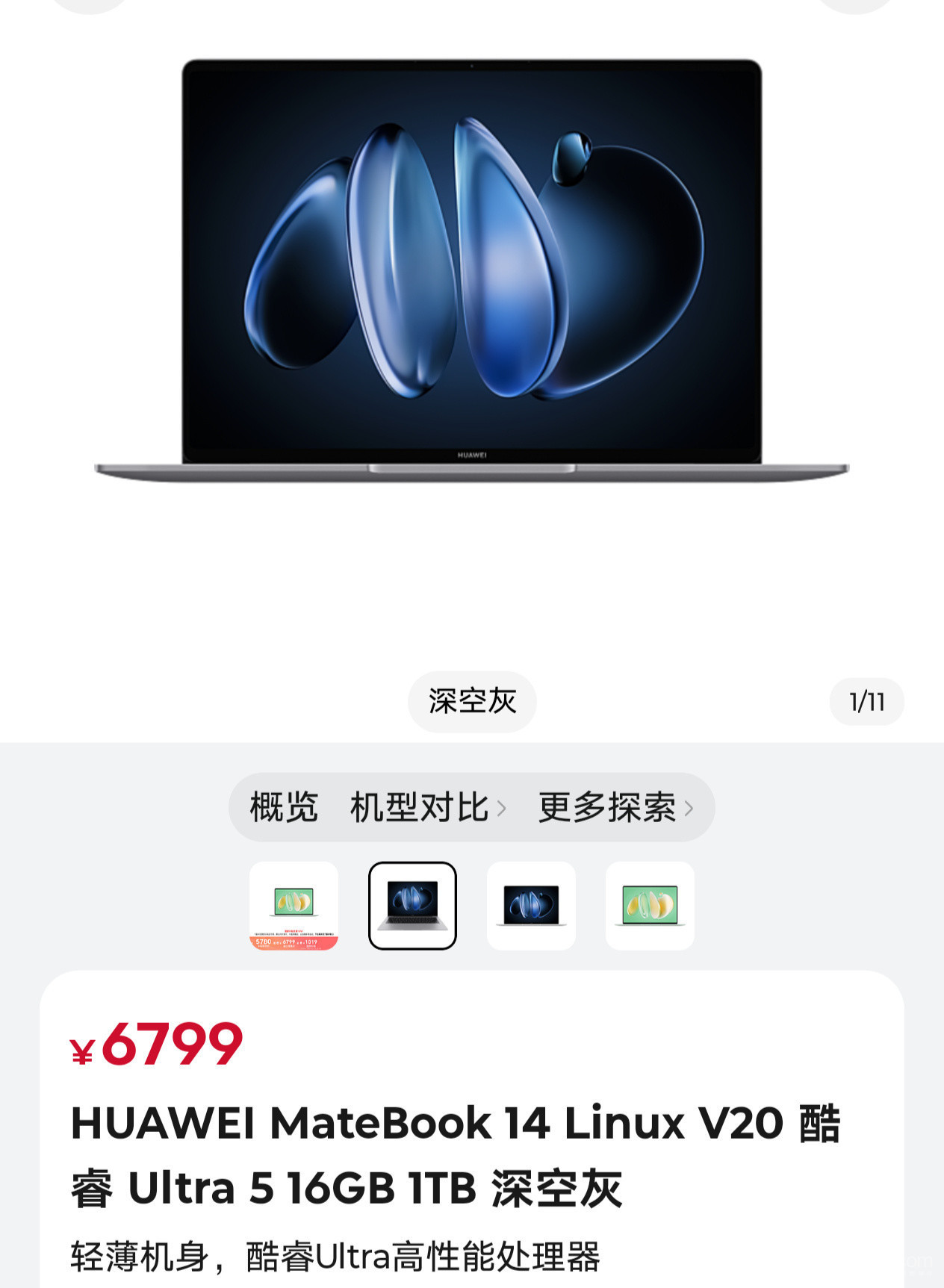 华为MateBook 14 2026款提供两款配置:酷睿Ultra 5/16GB/1TB版本售价6799元,酷睿Ultra 5/32GB/1TB版本售价7599元,分别较上一代上涨800元-900元。该机型延续轻薄机身设计,搭载酷睿Ultra高性能处理器,配备14.2英寸2880×1920分辨率OLED触控屏,支持120Hz高刷新率与3:2生产力比例。