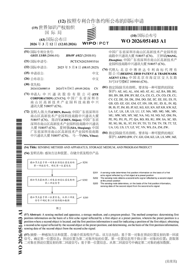 证券之星消息,根据企查查数据显示中兴通讯(000063)公布了一项国际专利申请,专利名为“感知方法和装置、存储介质及程序产品”,专利申请号为PCT/CN2025/093514,国际公布日为2026年3月12日。