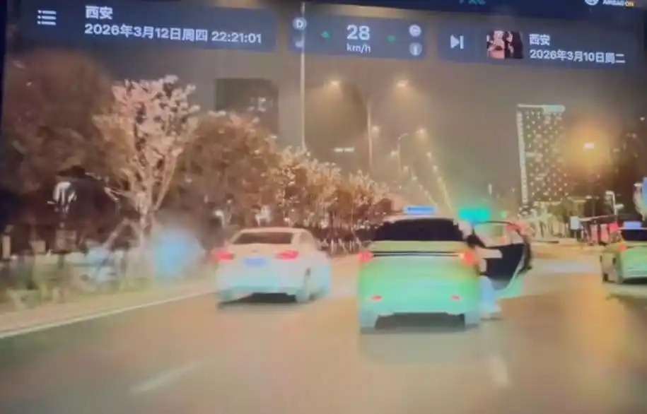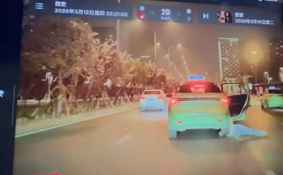 一段行车记录仪视频显示,3月12日晚10时20分许,西安一辆出租车行驶途中,有一名女子从车上掉了下来。